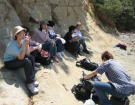 | (3) 化石掘り合宿 毎年、夏休みに化石掘り合宿に行っています。主な目的地は、熊本県天草郡です。この辺りには、中生代白亜紀の層が分布しており、アンモナイトやイノセラムスなどの化石が産出します。 |